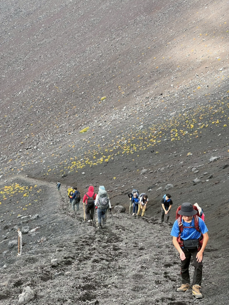 朝、バスで富士宮口五合目へ向かった。標高2400mの地点からの出発であり、すでに森林限界を超えた世界である。