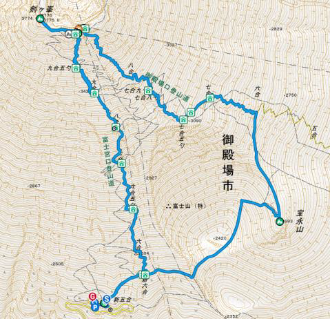 高山病を避けるために休憩を取り、登山を開始。途中、宝永山を経由して御殿場ルートに合流した。砂地の急登は歩きにくく、想像以上に体力を奪われた。